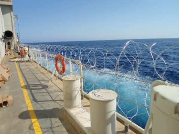 Barb wire, water cannons and sonic devices may work against pirates, but I would be more concerned with Houthi rebel missiles while attempting to pass Strait of Bab-el-Mandeb . . .