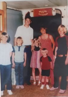 “I was ten years old in 1974 . . . it was very important to my parents that we experience the world and other cultures and after scrimping and saving, they took us on a year-long trip and cultural adventure to Europe. It was a very exciting time for me and my four brothers. We ranged in age 4 through 15. (photo of family below).