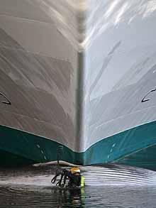In one of the most graphic photographs of a cruise ship / whale strike (right), in 2009 the Princess Cruises’ Sapphire Princess arrived in port in Vancouver, allegedly unaware that the cruise ship impaled a fin whale on the ship’s bow while in Alaskan waters. The whale was a female fin whale (Balaenoptera physalus). Princess claimed that the whale was already dead when the cruise ship hit her, a common excuse when a cruise ships kills a marine mammal.