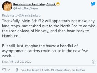 Another cruise ship tragedy in the making…🤪 https://t.co/QPGhGwfu2T— Renaïssance Man 8647 🇿🇦🤝🏻🇺🇦 (@Hein_The_Slayer) July 26, 2020