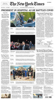 The New York Times and other newspapers report that at least twenty-nine people who attended ceremonies inside the White House and at the Rose Guardian associated with the Supreme Court nominee) and/or the recent Presidential debate have tested positive for COVID 19. In addition to the President and First Lady, White House director of strategic communications Hope Hicks, press secretary Kayleigh McEnany, two unidentified deputies to Ms. MeEnany, Chair of the Republican National Committee Ronna McDaniel, political consultant and former counselor to the president Kellyanne Conway, Trump campaign manager Bill Stepien, president of the University of Notre Dame Father John Jenkins, Republican Senators Tom Tillis, Mike Lee, and Ron Johnson, former New Jersey Gov. Chris Christie, top Trump advisor (and White supremacist) Stephen Miller, three White House journalists and a White House press staffer (as well as eleven debate staff members for the President in Cleveland) have all tested positive for the virus.