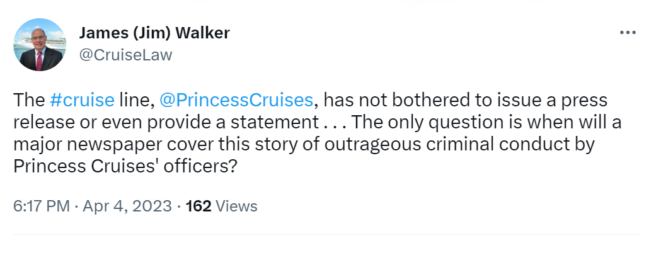 April 4, 2023 Update: Notwithstanding the serious and outrageous conduct that these two Princess Cruises’ officers have been convicted of, Princess Cruises has still not issued a press release of any type. Question – when will a major news organization cover these disturbing developments?