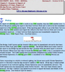 The Royal Caribbean SQM (blurred in original) requires the master of the cruise ship to “immediately” notify the cruise line’s security and marine operations departments (located at its headquarters in Miami) by telephone in any “suspected overboard situation.” Unless there is an actual and reliable sighting of the person going overboard, the SQM also prohibits the Master from turning the ship around to conduct searches in the water and even then only after the Master first notifies the cruise line’s marine operations department in Miami and obtains approval to do so. (Read: Royal Caribbean Unreasonably Delays Reporting Overboard Crew Member from Vision of the Seas).