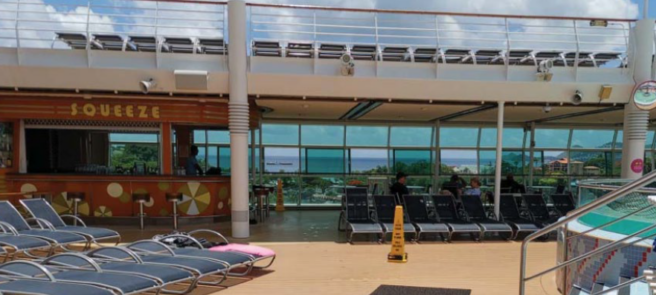 The second piece of evidence presented by the Wiegands is the wood railing that keeps passengers 19 inches away from Deck 11’s open windows: