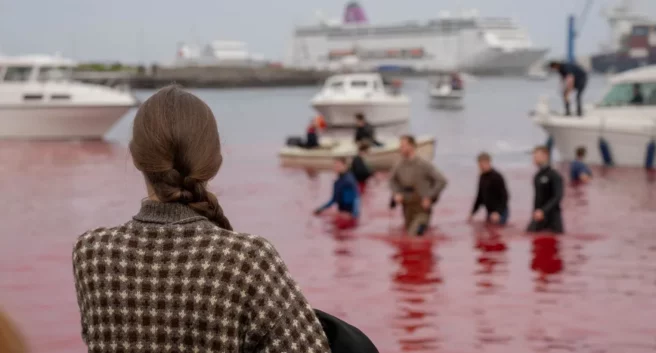 The Washington Post wrote about the slaughter, saying that the cruise ships were allegedly “blindsided” when they arrived at the port capital of Torshavn, “where a traditional hunt had turned the sea red. Hunters used motorboats and a helicopter to corral the whales in a beach nearby before dragging them with hooks and butchering them with knives.”