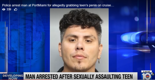 An adult cruise passenger, identified as Yorkiss Yazbek Montalvo Ramos, age 35, of Reynosa, Mexico, was arrested last weekend on a charge of lewd and lascivious touching of a minor after he grabbed a 17-year-old male’s penis while they were onboard the MSC Seascape, according to Miami’s Local 10 News.